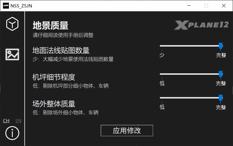 另外,为了照顾XP数量庞大的低配玩家群体,济南配套了一个可更改地景显示设置(静态机模、细节数量等)的应用程序